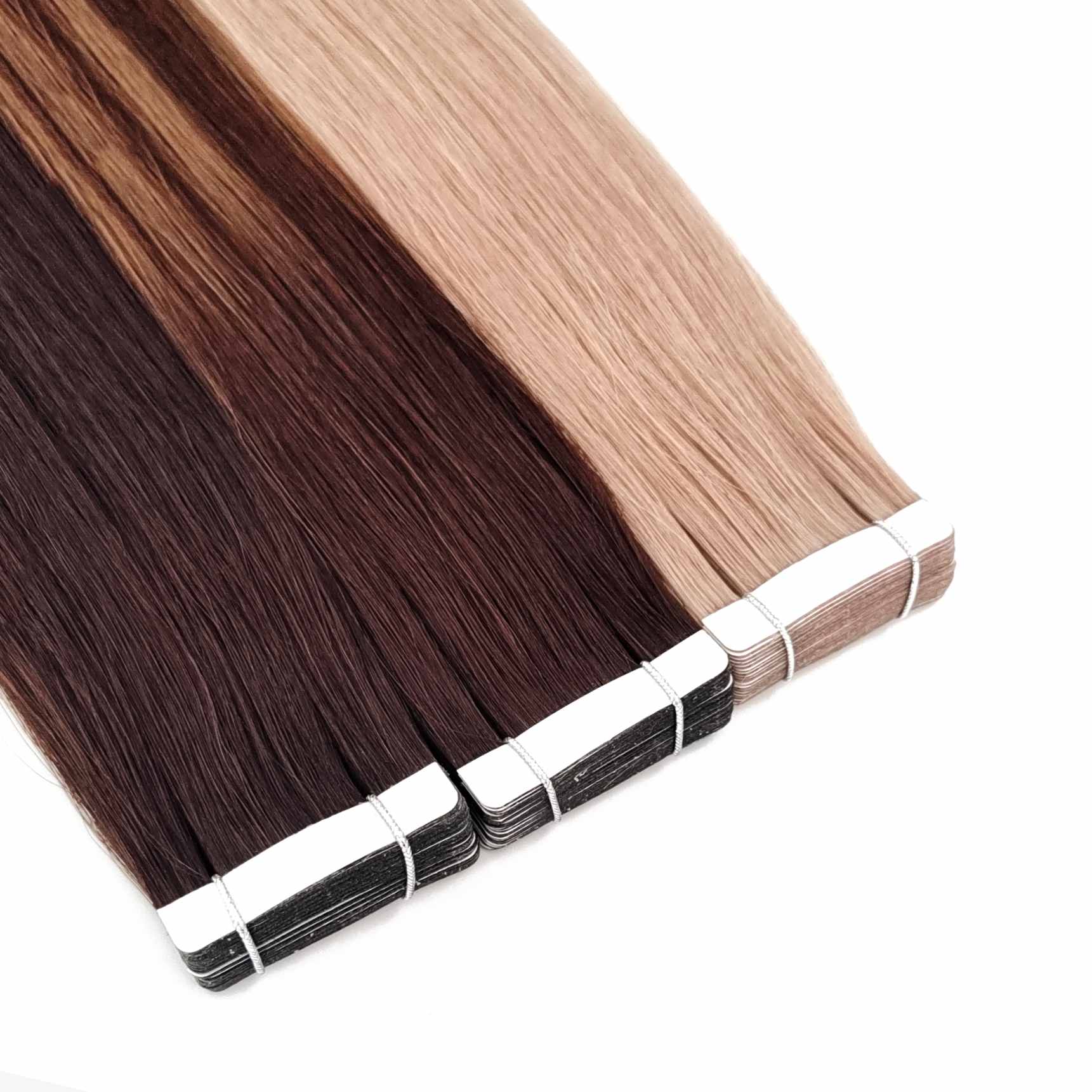 Damage-Free & Secure Hold Beauty shouldn’t come with pain. Our extensions come pre-taped with medical-grade, hypoallergenic adhesive that is gentle on your hair and scalp. The “sandwich method” of application ensures a secure hold that can last 4 to 8 weeks, withstanding daily activities like gym workouts and showers. When it’s time for removal, a professional remover will dissolve the bond cleanly without pulling or breaking your natural hair strands.